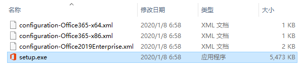 首先我们点击 这里 下载。接着双击运行下载的 officedeploymenttool_12325-20288.exe 应用程序进行安装。最后我们会得到以下几个文件